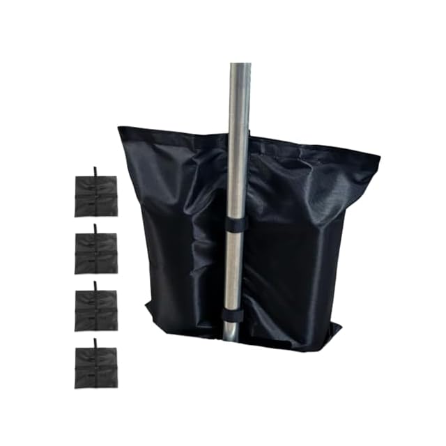 ペグが使えない場所でもしっかり固定できる、4個セットの万能ウエイトバッグです。テントやタープ、温室ハウスなどの設置時に、砂や石、水入りペットボトルなどを詰めて重しとして使えます。1個あたり約4Lの容量があり、砂なら約10kg程度まで対応可能。現地の砂や小石を使って、手軽に安定性を確保できます。 3点固定設計で安全性と使いやすさを両立。中央の仕切りで重さを左右に分散でき、マジックテープとバックルベルトでしっかりポールに固定できるので、ズレにくく安定感があります。 素材には耐水性・耐裂性・耐摩耗性に優れた600Dオックスフォード生地を採用。アウトドアや海辺など過酷な環境でも繰り返し使える高耐久仕様です。使用後はコンパクトに折りたたんで収納可能。持ち手もついているので、移動や設置もスムーズに行えます。 購入から30日以内であれば返品・返金も可能。不良や破損があった際には日本人スタッフが丁寧に対応するため、初めての方でも安心してご利用いただけます。キャンプやイベント、仮設設営をもっと安全・便利にしたい方におすすめのアイテムです。