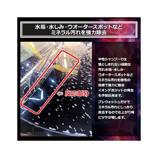 メンテナンスに最適。コーティングの犠牲被膜に与える影響を少なくしミネラル汚れを浮かせて除去出来るので、撥水効果を戻します。