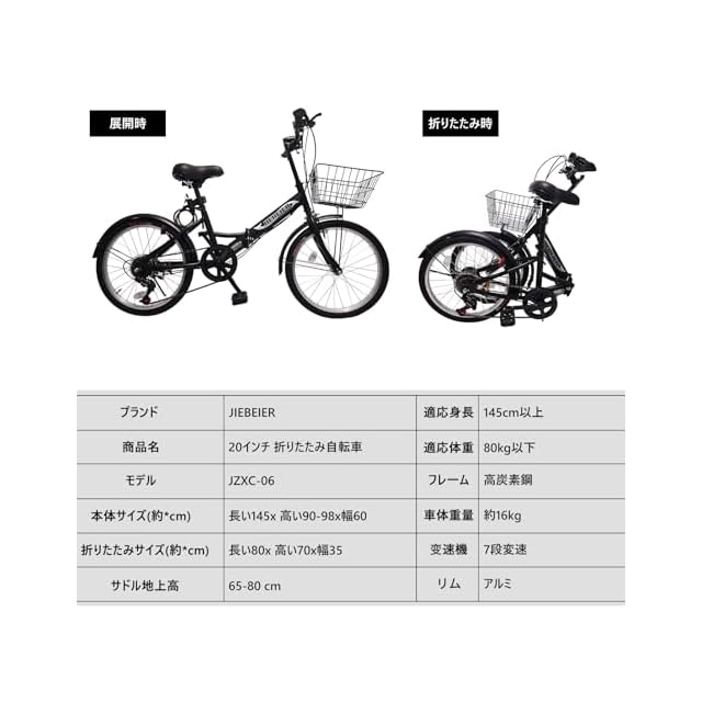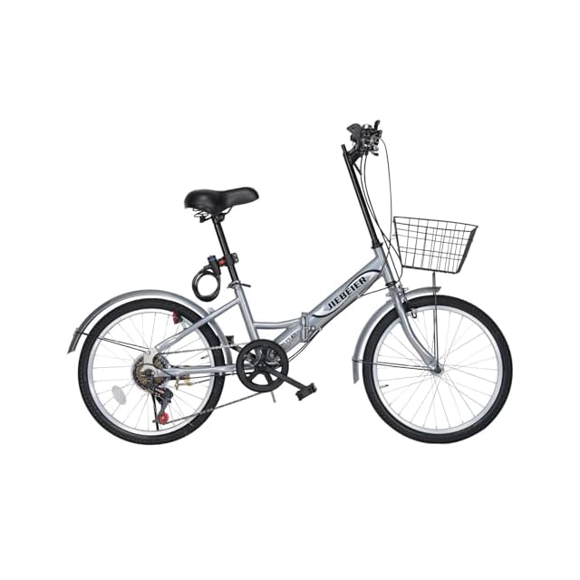 商品名:JIEBEIER 自転車 折り畳み自転車 20インチ 7段変速 カゴ ワイヤー錠 ライト付き 防滑タイヤ 高炭素鋼フレーム 軽量 小径車 通勤 通学 街乗り JZXC-06 (シルバー-2)