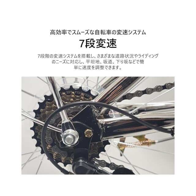 便利な7段変速システム:この折りたたみ自転車は7段変速システムを搭載しており、優れた適応性と柔軟性を備えています。異なる変速ギアは道路状況や個人のニーズに合わせて調整でき、スムーズなライディング体験が得られます。また、折りたたみ設計により持ち運びや収納が簡単になり、旅行や日常通勤に最適です。