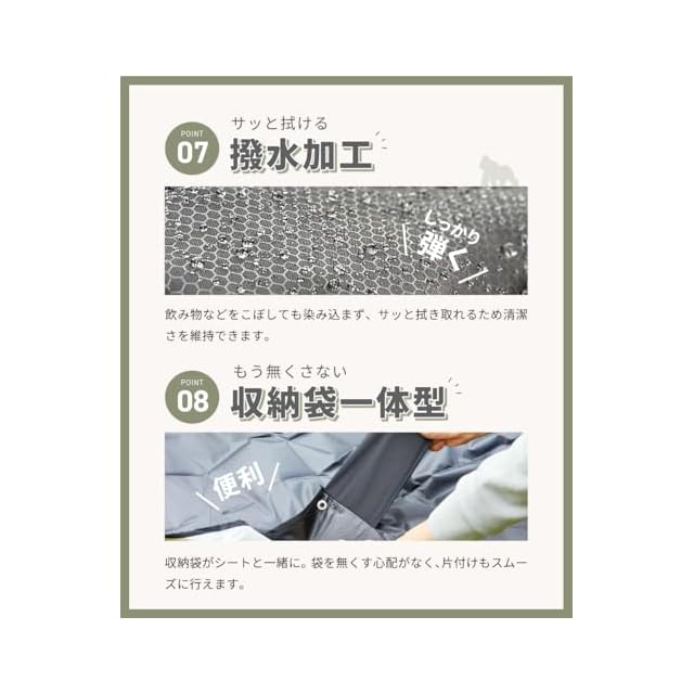 【水に強い撥水加工】ゴリラシートは表面に撥水加工を施しています。水などをこぼしてしまっても、サッと拭き取るだけですぐにサラサラ!