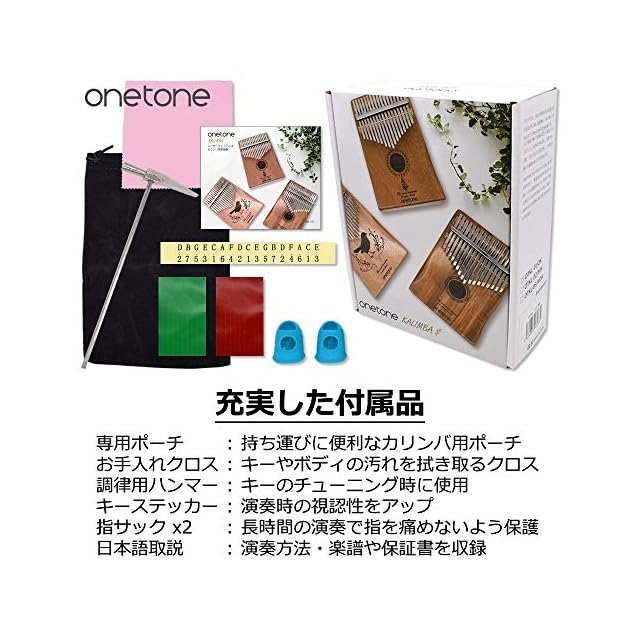 ONETONE ワントーン カリンバ (親指ピアノ) 17キー 初心者セット オクメ材 OTKL-01/OK (専用ケース/クロス/指サック/キーステッカー/調整用ハンマー/日本語マニュアル&楽譜集付き) | Trend Design BASE店