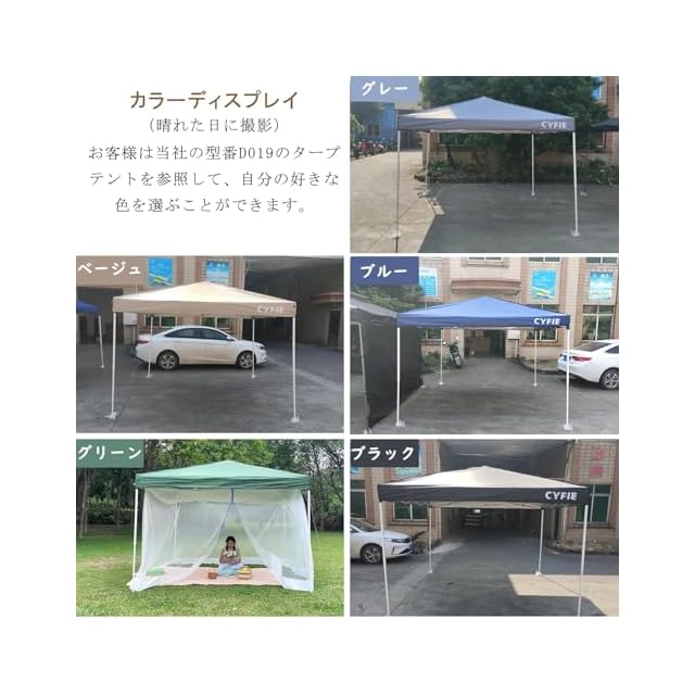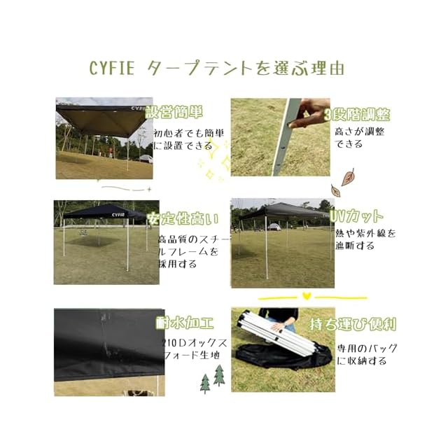 商品名:CYFIE タープテント 3m×3m ワンタッチタープテント高さ3段階調節 UV加工 高耐水加工 日よけ 組立簡単 持ち運び便利 キャンプ/ピクニック/運動会/アウトドア 収納ケース付き (グリーン, 3m*3m)