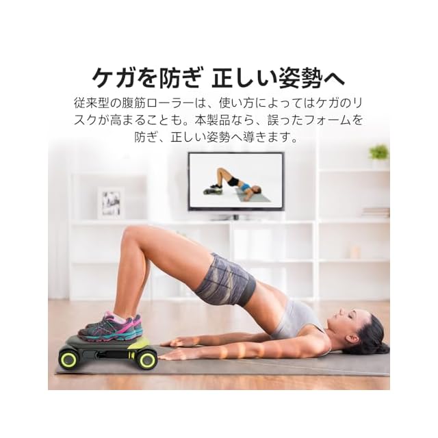 【全身トレーニング対応】腹筋トレーニング、ローラーエクササイズ、全身&下半身強化など、多彩なエクササイズが可能。