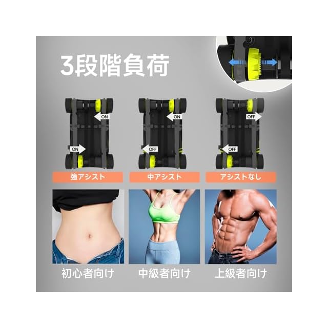 【3つのモードで自由に調整】 両側アシスト:アシスト最大で楽にトレーニング 片側アシスト:バランスを調整しながら鍛える 補助なし:負荷を高め、本格トレーニング