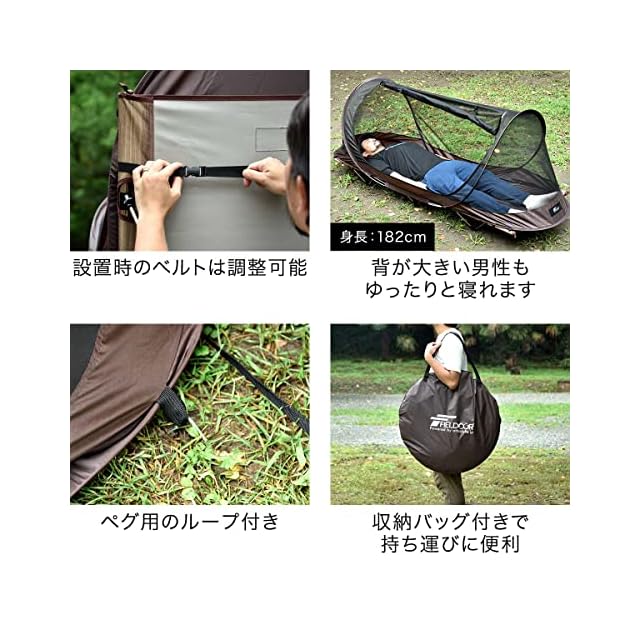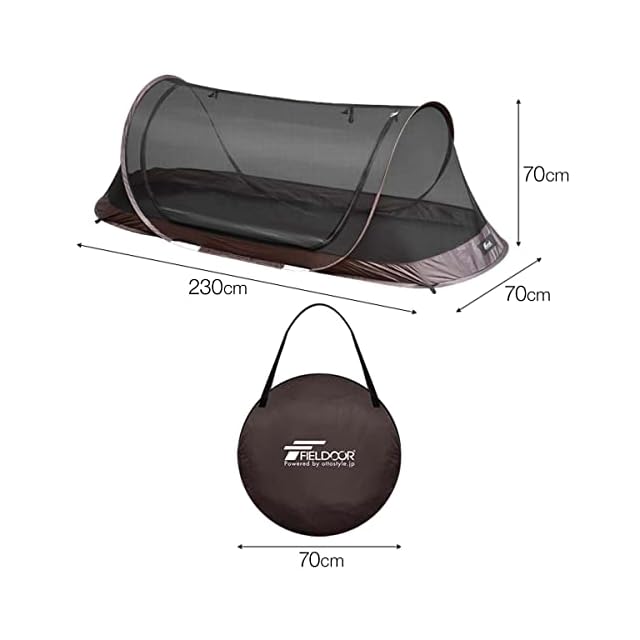 FIELDOOR ポップアップテント インナーテント 開くだけ 簡単設営 ワンタッチテント 1人用 ソロ ソロキャンプ コット タープ タープ泊 車中泊 カンガルースタイル フルクローズ 蚊帳 キャンプ アウトドア 防災用品 [メッシュタイプ] [ダークブラウン] | Trend Design BASE店