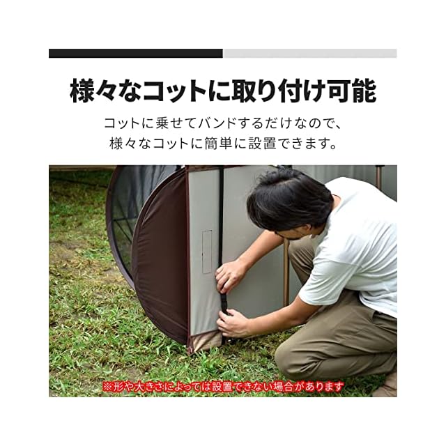 ✅【様々なコットに取り付け可能!】 コットに乗せてゴムバンドするだけなので、 様々なコットに簡単に設置ができます。 インナーテントを使用しないキャンプなどに ピッタリなアイテムです。
