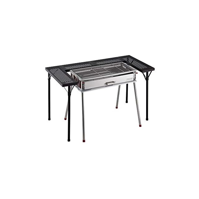 【炉端スタイルも】テーブルの高さは2段階に調節可能なので、ローポジションでグリルを囲めば椅子に座ってゆったり炉端スタイルで楽しむことも出来ます。