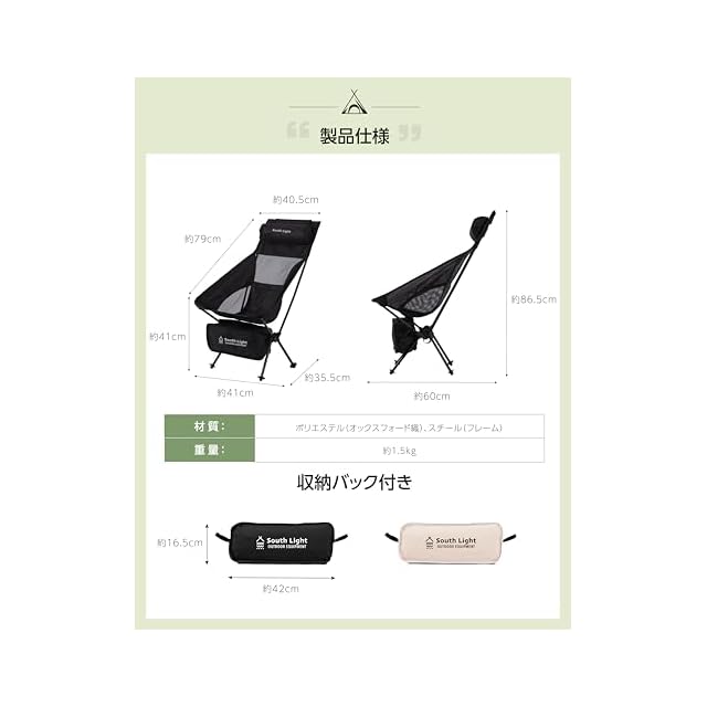 商品名:アウトドアチェア 折りたたみ 枕付き 超軽量 2025新型 ハイバック 椅子 キャンプ チェア コンパクト 折り畳み 耐荷重150kg 背もたれ 収納袋付 お釣り バーベキュー 登山 持ち運び便利 2色【hidemasa】 (ブラック, 1個)