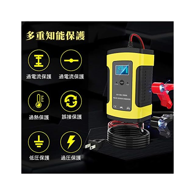 商品名:バッテリー充電器 12V 6A バッテリーチャージャー 4-100Ah鉛蓄バッテリー用 LEDランプ逆接続/ショート/過電圧/過電流保護 メンテナンス充電器 自転車 バイク用 日本語取り扱い説明書