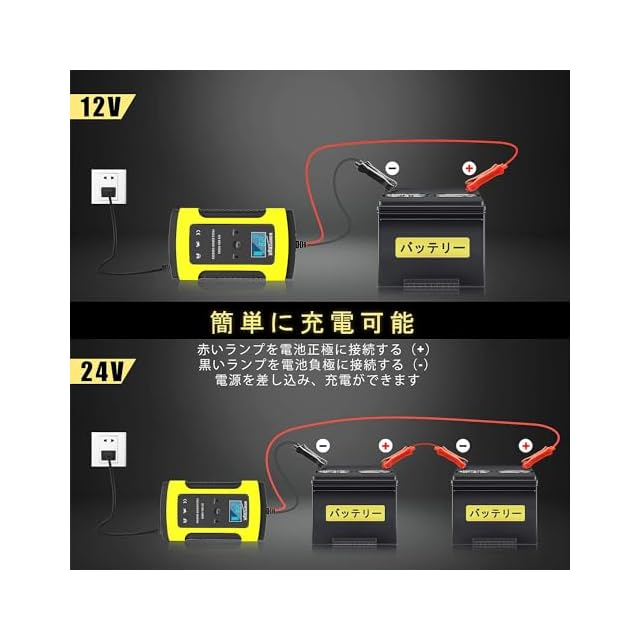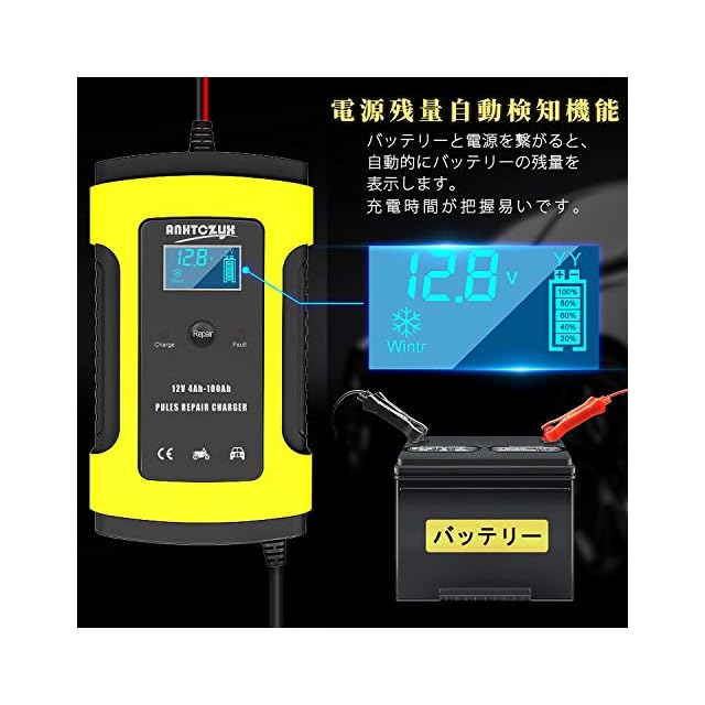 【小さくて用途が幅広い】最初にバッテリータイプの適合性を確認しましょう、バイクやおもちゃの車、自動車なの4-100AhのAGM/GEL/密閉型/開放型の鉛蓄バッテリーに充電可能です。バッテリー上がりしたけれど急いで車を使用しなければならないというときには、エンジンが始動できる状態に回復するのが大活躍です。本体も小さくで場所をとらないくて、収納も持ち運びも便利です