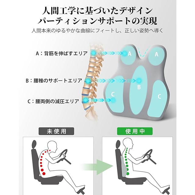 【適用場合・対象】車用だけでなく、オフィスや自宅やさまざまな場所で使用可能です。車、ピックアップ、トラックを運転する方、長時間の座り、デスクワークの多い方、家事による腰がづらい方にもオススメです。誕生日、母の日、父の日、敬老日等の祝い日に大切な人へのプレゼント、ギフトとしても最適です。