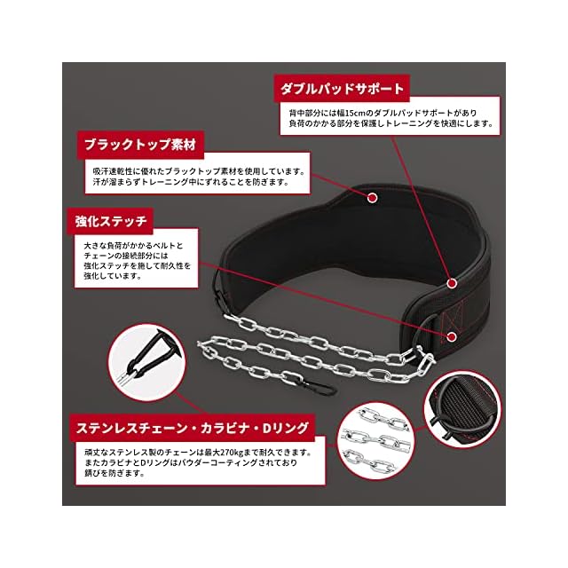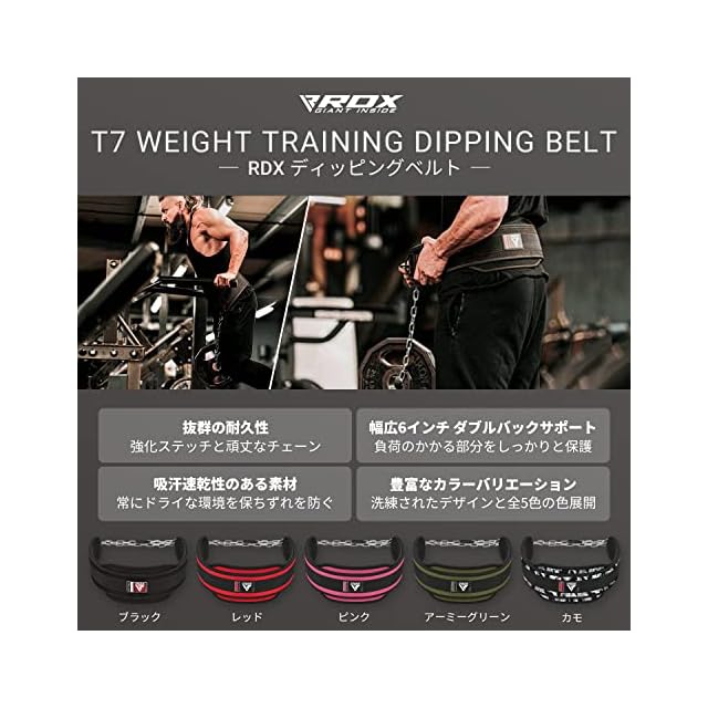 RDX ディッピングベルトはディップス、チンニング、スクワットなどのフィットネストレーニングでさらなる負荷をかけるために必須のアイテムです。こだわりの高品質素材と強固なステンレスチェーンにより高重量にも耐えられる作りになっています。