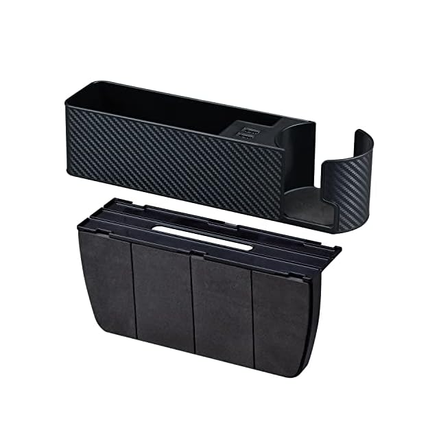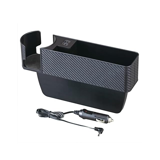 セイワ(SEIWA) 車内用品 シートサイドポケット USBポート付き 2口 ドリンクホルダー 収納 車用 カーボン WA82 シートオーガナイザー 4.8A出力 自動識別 | Trend Design BASE店