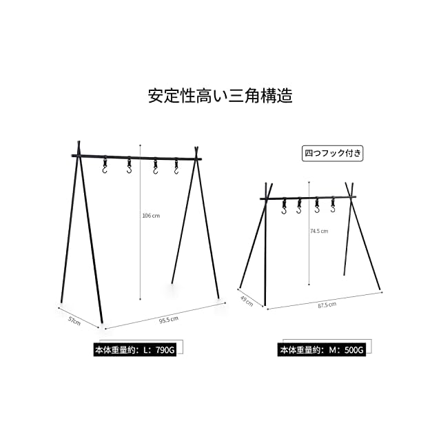【優れたデザイン】本製品は、錆びが付きにくい、歪みもしにくく、室外で安心に使用できる。1〜2人分の洋服や調理器具などの小物は十分にかけられる。ライターなどを収納、洗濯物を干すなどのことができます。三脚で支えることで、安定感抜群。