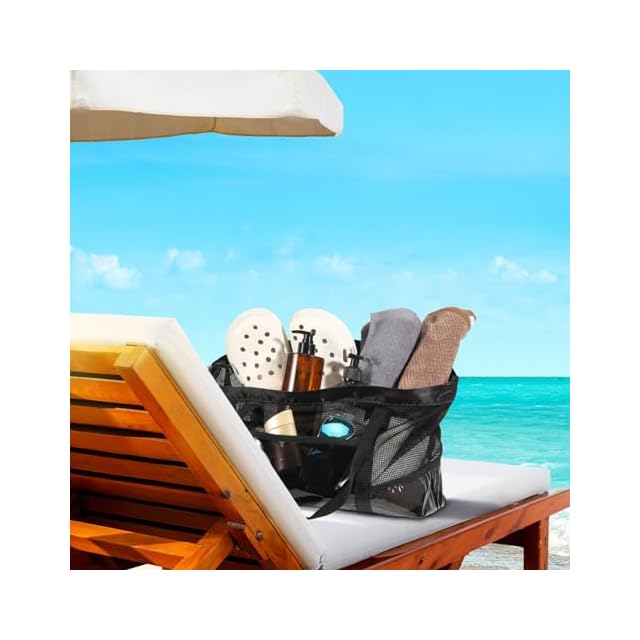 MoKo プールバッグ 大人 温泉バッグ 大容量20L ビーチバッグ スイミングバッグ 水泳バッグ 通気メッシュ 底部PVC 広いマッチ仕様 自立可 手提げトートバッグ 半透明 温泉/サウナ/スパ/ジム/水泳/海辺/プール/水遊び/砂場遊びなどに適用 男女兼用 Black | Trend Design BASE店