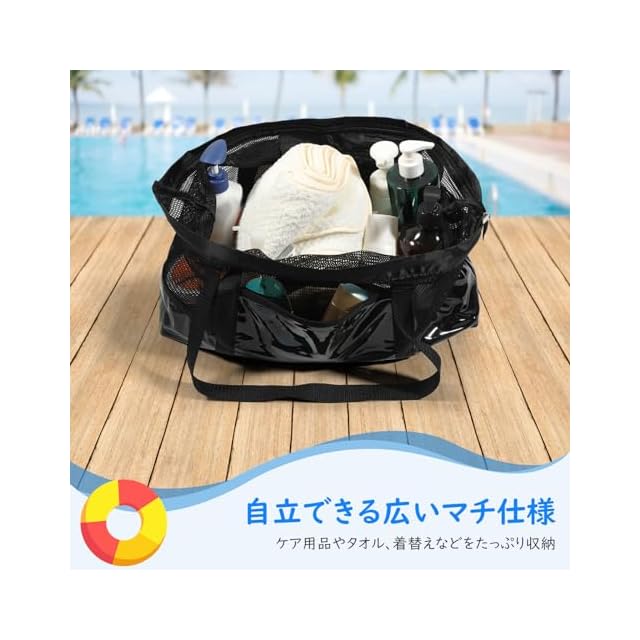 商品名:MoKo プールバッグ 大人 温泉バッグ 大容量20L ビーチバッグ スイミングバッグ 水泳バッグ 通気メッシュ 底部PVC 広いマッチ仕様 自立可 手提げトートバッグ 半透明 温泉/サウナ/スパ/ジム/水泳/海辺/プール/水遊び/砂場遊びなどに適用 男女兼用 Black