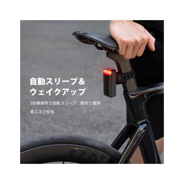 【ブレーキ感知&自動ON/OFF機能】減速や急ブレーキ時に自動でブレーキライトが点灯し、後続車両に減速を知らせて事故リスクを軽減。3分間動きがないとスリープモードに入り、再度動き出すと自動で復帰します。