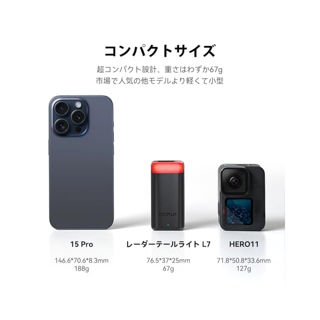 商品名:CYCPLUS 自転車 テールライト L7 自動点灯 リアライト ブレーキ感知 車両接近警告 最大160m IPX6防水 2000mAh充電式 自動点灯 消灯 夜間走行対応