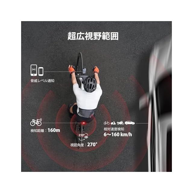 ブライトン 自転車後方レーダー リアビューレーダー テールライト 最大190mまで後方からの接近車両を検知 ブレーキランプ機能搭載 最大17時間稼動