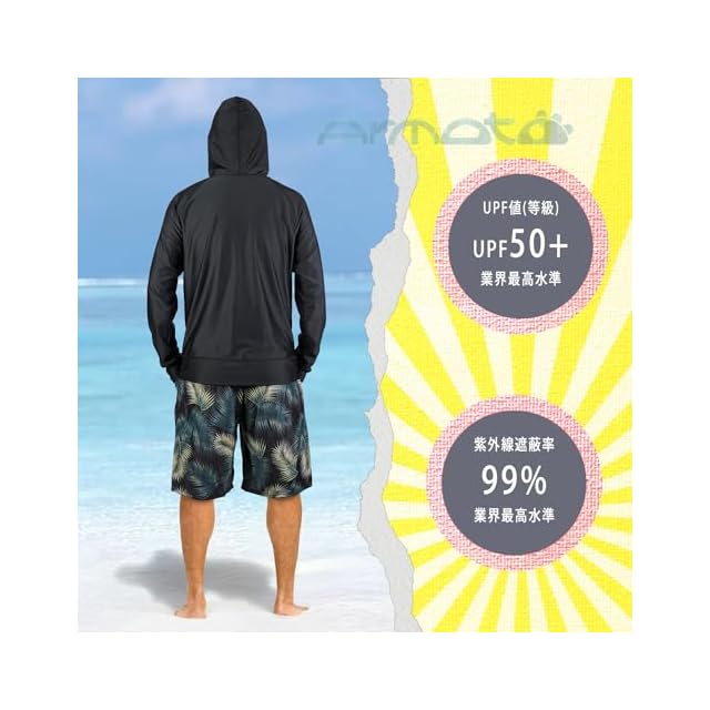 商品名:【ARMOTO】 ラッシュガード メンズ 水着 長袖 パーカー レギンス サーフパンツ フィットネス [UVカット UPF50+・吸汗速乾] 水泳 水陸両用 大きいサイズ