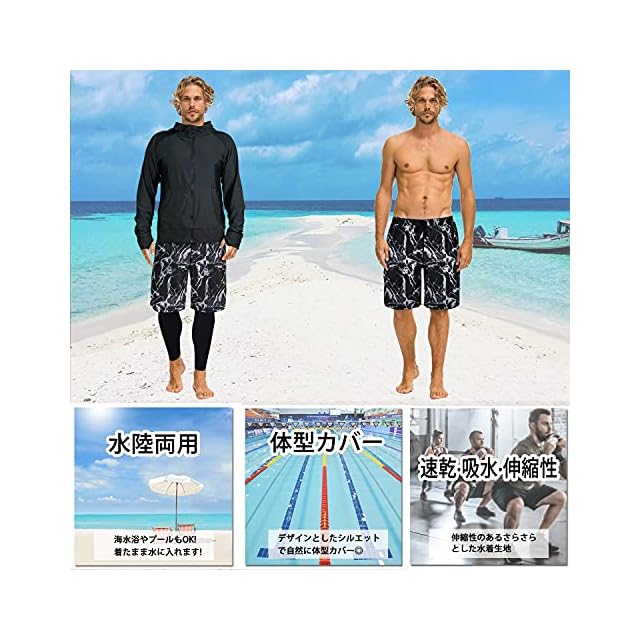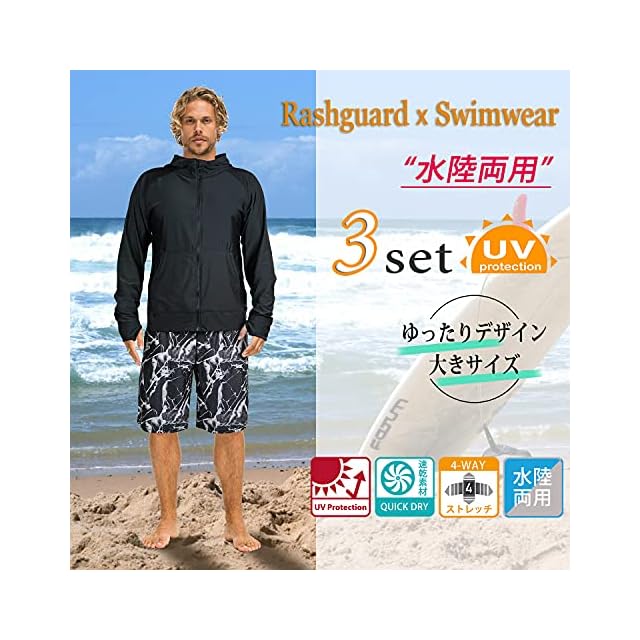 商品名:【ARMOTO】 ラッシュガード メンズ 水着 長袖 パーカー レギンス サーフパンツ フィットネス [UVカット UPF50+・吸汗速乾] 水泳 水陸両用 大きいサイズ