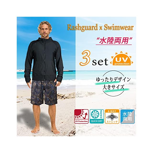 商品名:【ARMOTO】 ラッシュガード メンズ 水着 長袖 パーカー レギンス サーフパンツ フィットネス [UVカット UPF50+・吸汗速乾] 水泳 水陸両用 大きいサイズ