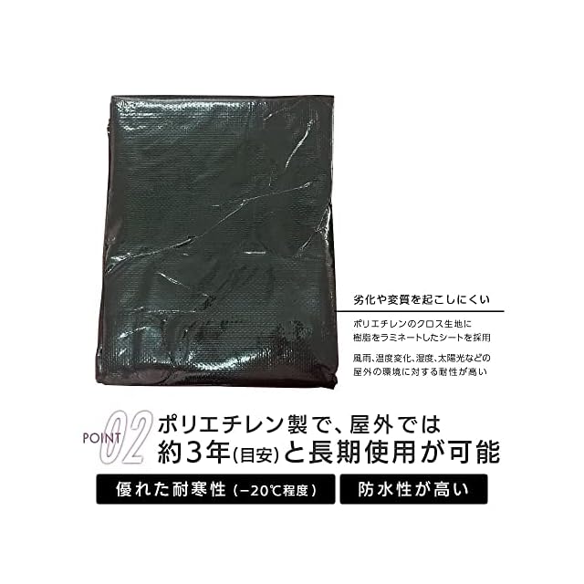 【仕様】本体サイズ:5.4×7.2m(呼称)、実寸サイズ:5.3m×7.1m(約24畳)/材質:ポリエチレン(本体)、アルミニウム(ハトメ)/ハトメ数:28ヵ所/ハトメ間隔:約90㎝/屋内仕様目安:約3年/カラー:ブラック