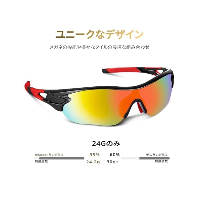 商品名:[BEACOOL] スポーツサングラス 偏光レンズ 自転車 登山 釣り 野球 ゴルフ ランニング ドライブ バイク テニス スキー 超軽量 UV400 TAC TR90 紫外線防止 メンズ レディース ユニセックス サングラス 安全 清晰