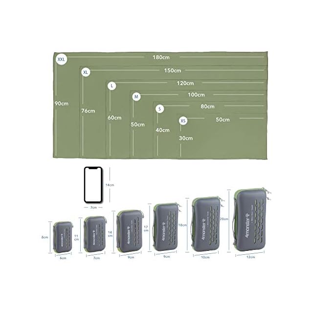 ◆ 【各収納ボックスに1枚タオル】:この速乾タオルには10 色あり、各色には6サイズがあります。XSサイズ: 30*50(cm)、Sサイズ: 40*80(cm)、Mサイズ: 50*100(cm)、Lサイズ: 60*120(cm)、XLサイズ: 75*150(cm)、XXLサイズ: 90*180(cm)、各タオルには収納ボックスが付いています。あなたがこれを買うとき、好きな色と望むサイズが選ぶことができます.