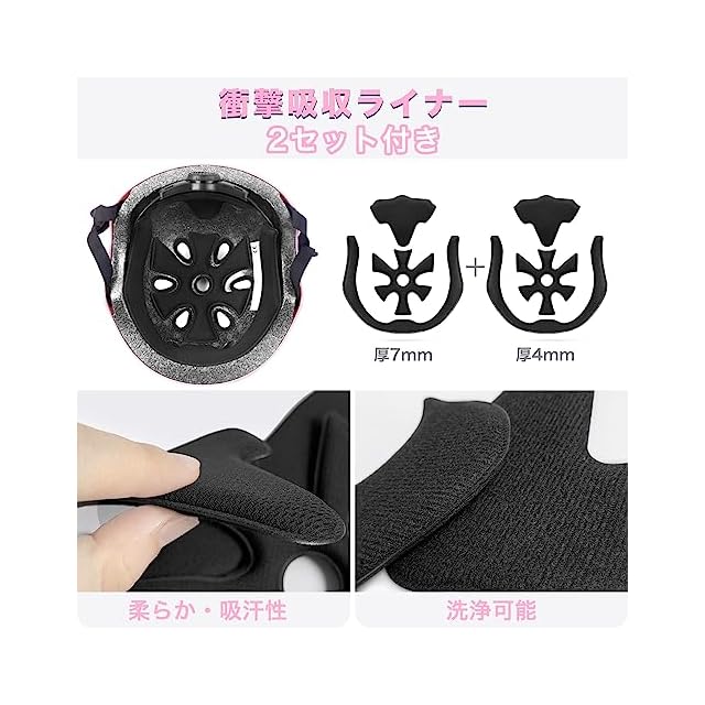 【3D全方位保護+置換クッション2セット】内装されている衝撃吸収ライナーが大きな衝撃も吸収でき、柔らかさによって頭部を守っています。他社の一部のライナーと違って、我が社のヘルメットの衝撃吸収ライナーは8 mmのセットと4mmmのセットが付きます(前頭部、後頭部、側頭部、頭頂部を含む)。吸汗性能が良い多孔質材料、取り出して洗濯できるし、汗や細菌の場合で簡単に対応できます。日常的なヘルメットのメンテナンスも楽!