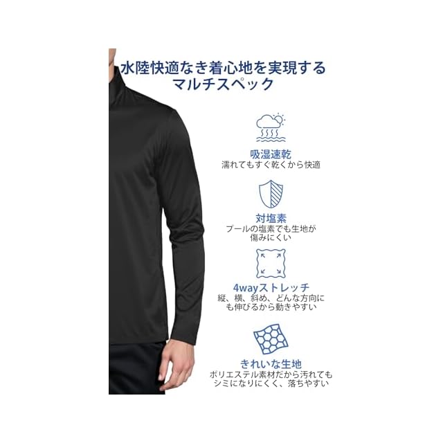 【優れた生地】85%ポリエステル、15%ポリウレタン水着素材で、紫外線対策、伸縮性、接触冷感、水陸両用です。ラッシュガード メンズ は様々なシーンで大活躍で、ランニング、サイクリング、海・プール、アウトドアなどシンプルカラーで着こなしやすさ抜群です。