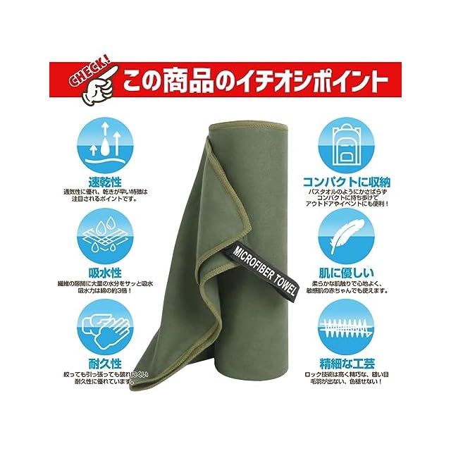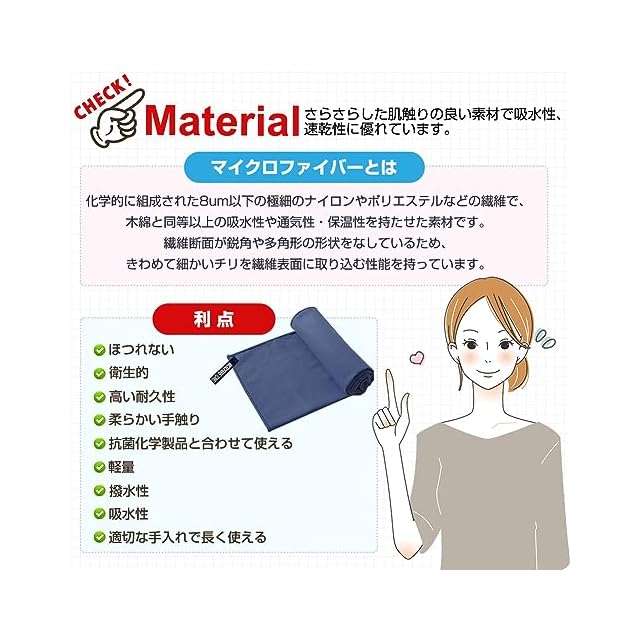 【超吸水・速乾・抗菌】見た目が薄くても吸水性に優れ、タオル専用のふわふわなマイクロファイバー繊維を使った吸水速乾タオル。極細繊維で肌触りもシルキーです。抜群の吸収力のうえ、軽くて肌触りも良く、耐久性も優れています。カビを防ぎ抗菌処理を施しました、汗を吸っても安心、濡らしたタオルに雑菌が繁殖するのも防いでくれます。