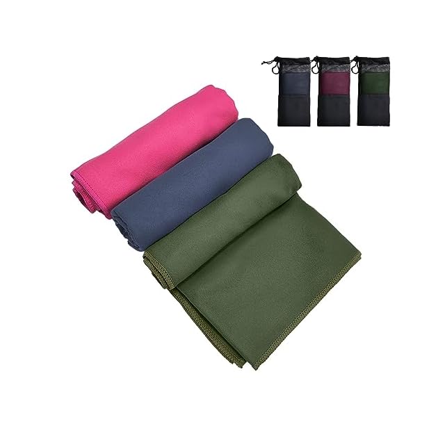 商品名:超吸水×速乾 マイクロファイバータオル|髪・スポーツ・ジム・水泳・旅行用 柔らかいバスタオル【耐久性 軽量 収納袋付き】80×40cm (スレートグレー+オリーブドラブ+ローズレッド)