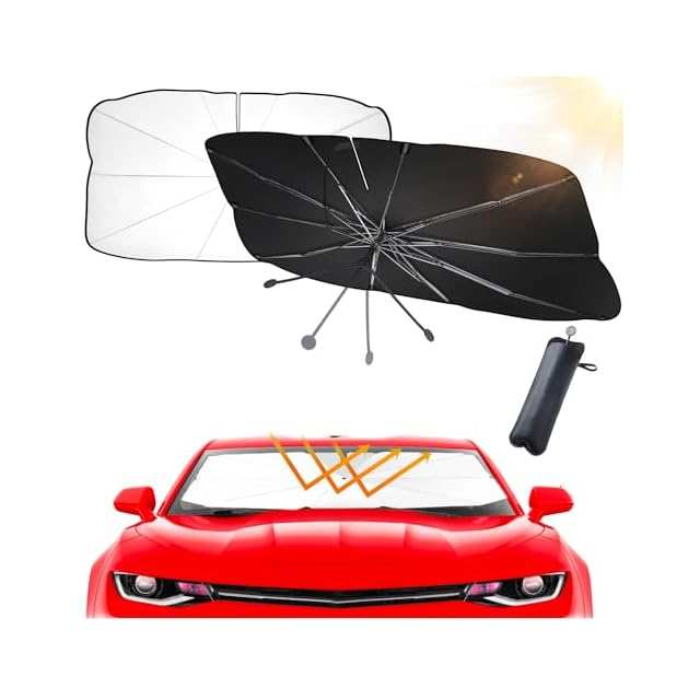 【頑丈な10本骨組み・車用サンシェード 】 10本の繊維複合材料で作られた骨を採用し、製品の安定性を効果的にする同時に、柔軟性もあってかなり頑丈で壊れにくいです。サンシェード 傘の傘骨は車のフロントガラスに完全にフィットし、隅々まで紫外線を遮断できます。中棒はアルミ合金製で、サビを止められて耐久性が高いです。