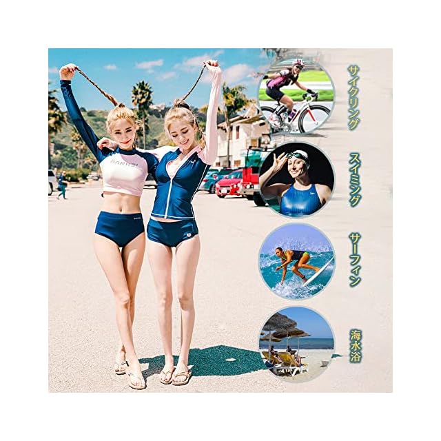 <b>【セット内容】</b><br/> 長袖ラッシュガード、ショートパンツ、ブラ、レギンス、ビギニショーツがセットになっています。長袖ラッシュガードとレギンスセット、レギンス付き足首まであるので、虫刺されやクラゲ対策、擦り傷などの外傷対策にも。<br/><br/> <b>【吸汗速乾】</b><br/> 速乾性に優れた水着素材なので、海やプールだけでなくジムやヨガなど 、汗をかくシーンでの使用もOK、水陸両用で全アイテム着たまま水に入れます。軽量なのでとても動きやすく、最適の機能性、吸汗速乾通気のドライ繊維、激しい運動の後もさらっとした着心地!<br/><br/> <b>【UVカット】</b><br/> 安心のUV対策生地を使用しているため(肌に有害な紫外線を98%以上カット)、日差しが強い時の日焼け防止にも大活躍。もちろん紫外線対策もばっちりでお肌を守ります、防菌防臭。<br/><br/> <b>【優れたデザイン】</b><br/> お洒落な柄プリントすっきりしたシンプルなデザイン、機能性だけでなくデザインも考え抜かれた商品です。襟元、手首、足首にスキンケアデザインを使って、運動の快適性をします。<br/><br/> <b>【適用場合】</b><br/> 夏場のウォータースポーツや野外活動の際、海、ジム、プールやビーチ、、温泉と幅広いジャンルで使える便利なスポーツ・アイテムです。通勤、通学、ランニング、ヨガなど、スポーツウェアとしてもご利用いただけます。