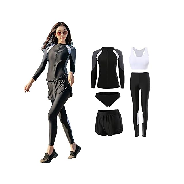 [YFMAYI] ラッシュガード レディース 水着 フィットネス 5点セット UVカット 長袖 前開き 水陸両用 水泳 吸汗 速乾