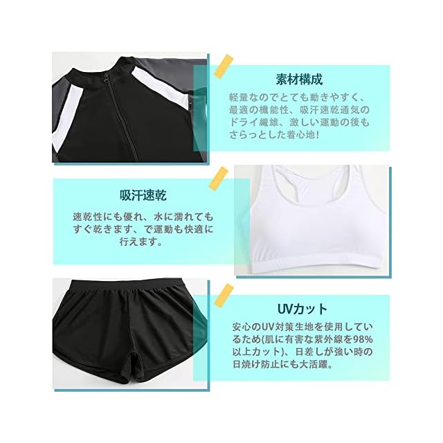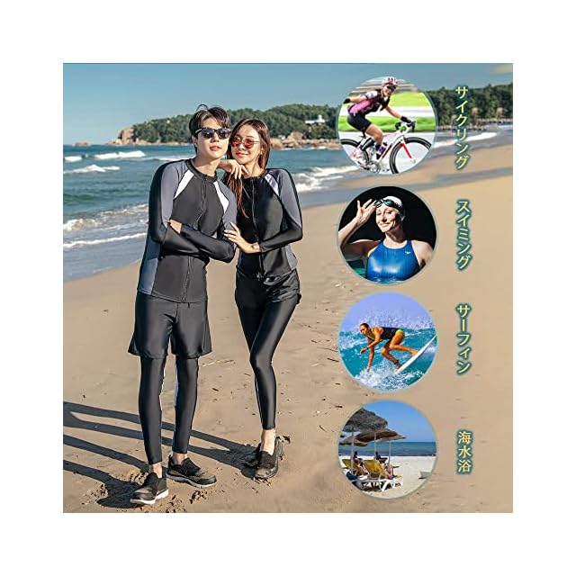 商品名:[YFMAYI] ラッシュガード レディース 水着 フィットネス 5点セット UVカット 長袖 前開き 水陸両用 水泳 吸汗 速乾