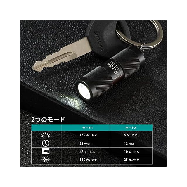 I1R 2 PRO キーホルダーライトは軽量でコンパクトに仕上がり、ポケットやバックに入れて携帯しやすいです。懐中電灯のヘッド部を回すだけで2段階の輝度を簡単に切り替え、夜間作業、整備、点検、防災、キャンプ、夜釣り、山登り、散歩、緊急時など様々なシーンでご活用頂けます。付属のType-Cケーブルを使って簡単に充電でき、環境に優しいながら利便性も高いです。また、フル充電までは約100分間がかかり、満充電の場合に最大12時間の連続使用が可能で、いきなりバッテリー切れの心配はなく、心置きなくお使いいただけます。