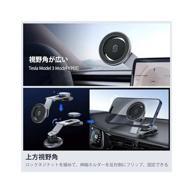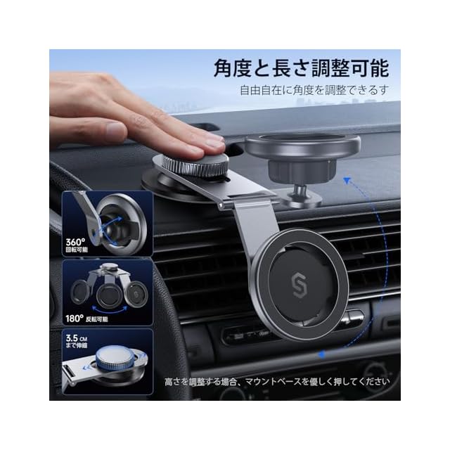 商品名:SYNCWIRE ダッシュボード用ユニバーサルカーマウント - スペースグレー、テスラスクリーン、車用マグネット式電話ホルダー、折りたたみ式アルミ合金アーム、iPhone 15 Pro Max 14 13 12およびすべての電話用の したカーマウント