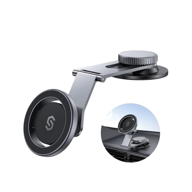 SYNCWIRE ダッシュボード用ユニバーサルカーマウント - スペースグレー、テスラスクリーン、車用マグネット式電話ホルダー、折りたたみ式アルミ合金アーム、iPhone 15 Pro Max 14 13 12およびすべての電話用の したカーマウント | Trend Design BASE店