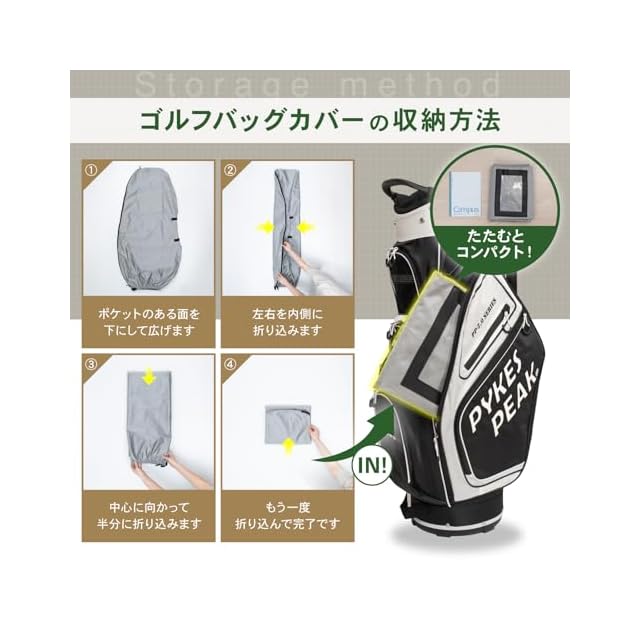 ✅【コンパクトに収納できる】トラベルカバーの 収納時は、折りたたむと大学のノートサイズ(約B5サイズ)にまで小さくコンパクトになるので、ゴルフをプレイ中はキャディバッグの中や手荷物にも簡単に収納することができ、邪魔になることはありません!プレイ中の突然の雨にも取り出してすぐ取り付けができる簡単取り付け設計です!