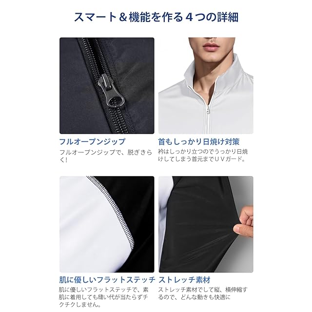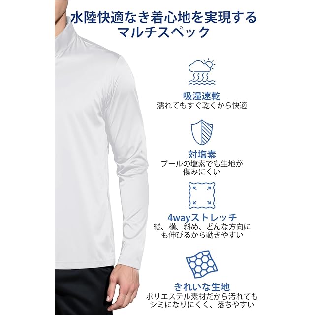 【優れた生地】85%ポリエステル、15%ポリウレタン水着素材で、紫外線対策、伸縮性、接触冷感、水陸両用です。ラッシュガード メンズ は様々なシーンで大活躍で、ランニング、サイクリング、海・プール、アウトドアなどシンプルカラーで着こなしやすさ抜群です。
