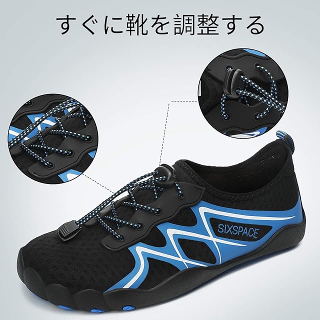 商品名:[SIXSPACE] マリンシューズ ウォーターシューズ アクアシューズ ビーチシューズ スニーカー ヨガ シュノーケリング 水陸両用 軽量 通気 ブルー 23.5cm