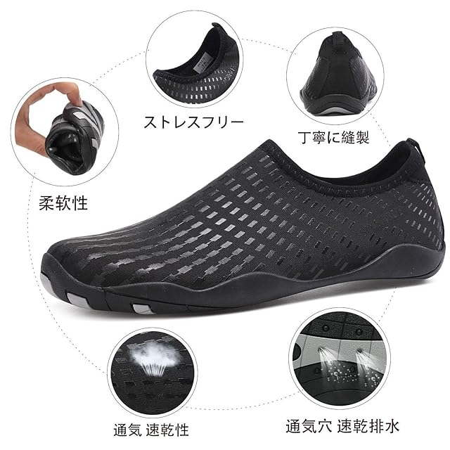商品名:Sixspace マリンシューズ ウォーターシューズ 水陸両用 アクアシューズ シュノーケリング ビーチシューズ 軽量 通気 ヨガ サーフィン 男女兼用 黒 25cm
