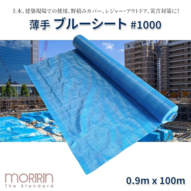商品名:モリリン ブルーシート ロール レジャーシート #1000 薄手 0.9m×100m 軽量タイプ 1本入 展示会 工事現場 建設 保護マット 保護シート