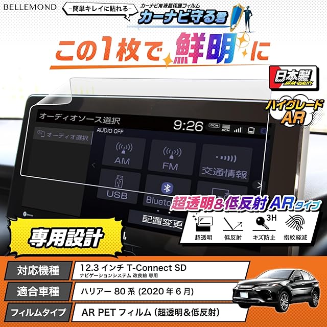 ベルモンド ハリアー 80系 (2020年6月発売モデル) |PETフィルム|超透明&低反射タイプ|ナビ フィルム 12.3インチ 【 カーナビ守る君 】日本製 指紋防止 ARフィルム 保護フィルム カーナビ アクセサリー TOYOTA HARフィルムRIER BELLEMOND B0896