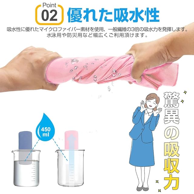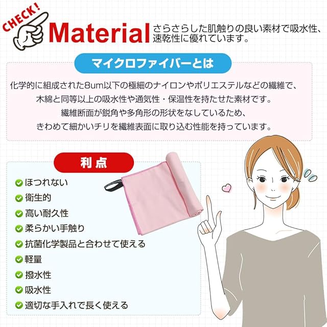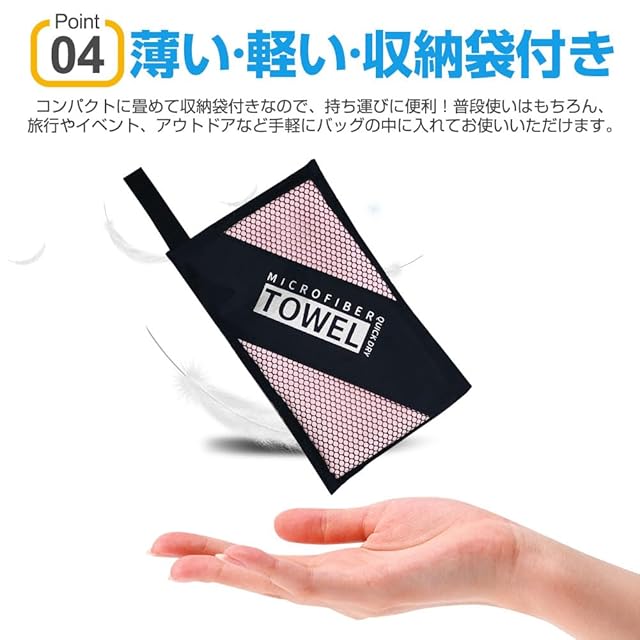 【超吸水・速乾・抗菌】見た目が薄くても吸水性に優れ、タオル専用のふわふわなマイクロファイバー繊維を使った吸水速乾タオル。極細繊維で肌触りもシルキーです。抜群の吸収力のうえ、軽くて肌触りも良く、耐久性も優れています。カビを防ぎ抗菌処理を施しました、汗を吸っても安心、濡らしたタオルに雑菌が繁殖するのも防いでくれます。
