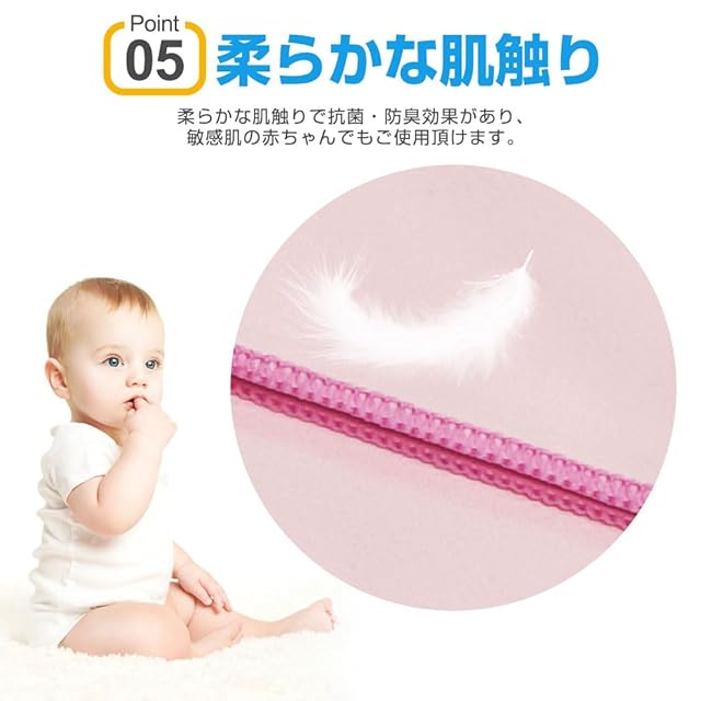 【肌に優しい・高耐久性】従来の綿素材より繊維素材は高強度で耐久性がある特長を待っています。手触りが柔らかいので、通気性が抜群で、超低摩擦なので、肌に心地よく、敏感な赤ちゃんにも使えます。