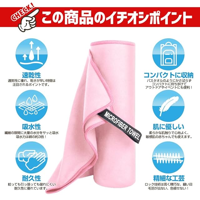 商品名:速乾タオル 髪 マイクロファイバータオル バスタオル スポーツタオル ジムタオル スイミングタオル セイムタオル 旅行タオル 超吸水 柔らかい 耐久性 速乾 軽量 収納袋付き 80x40cm (ピンク)